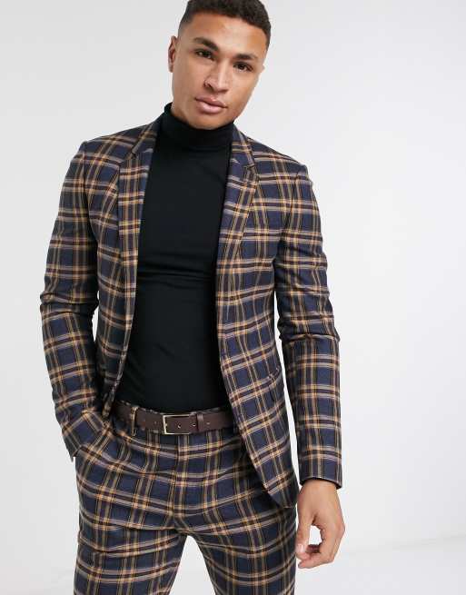 Mustard check blazer clearance, ASOS DESIGN skinny suit jacket in mustard and red bold check ASOS clearance