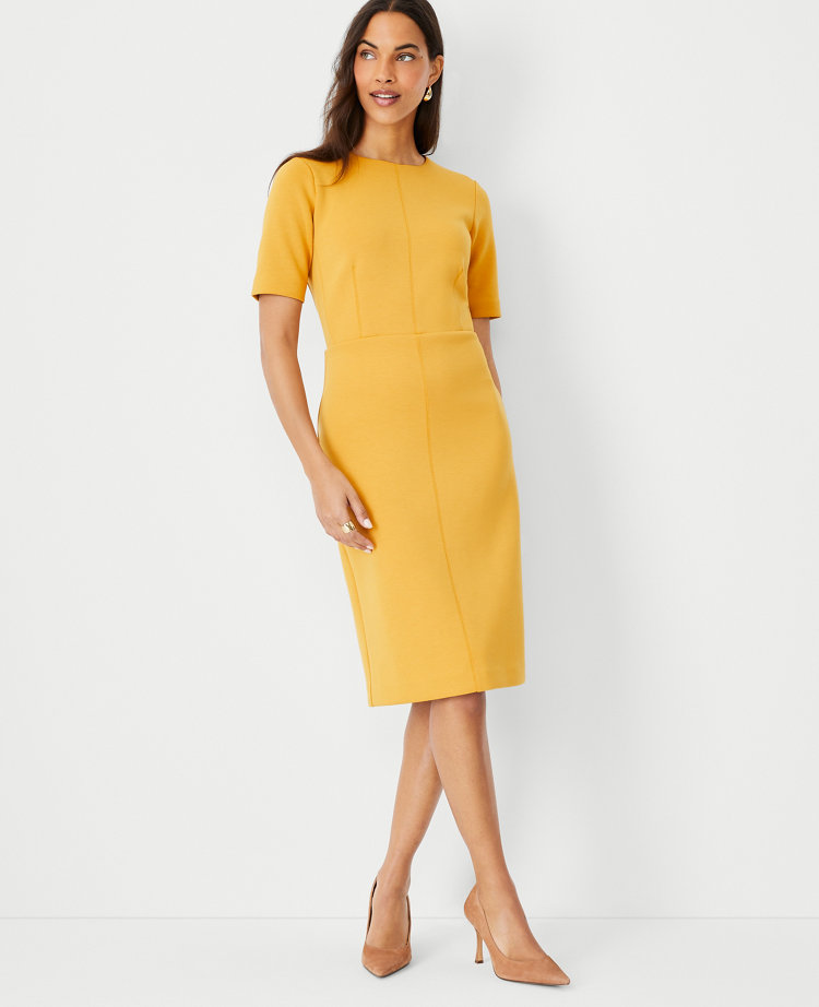 Mustard yellow sheath dress clearance, Adrianna Papell Crepe Sheath Dress Warm Sun 6 clearance