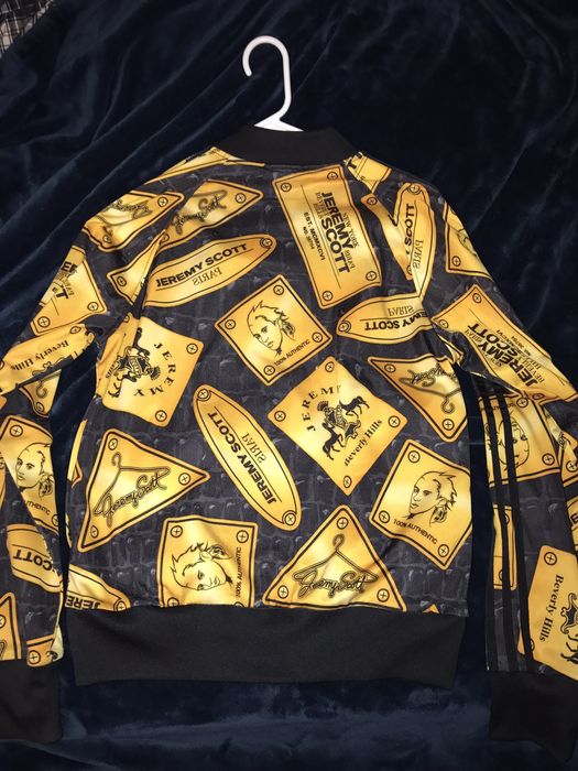 JEREMY SCOTT x ADIDAS Gold plaque print logo stripe track jacket size Medium