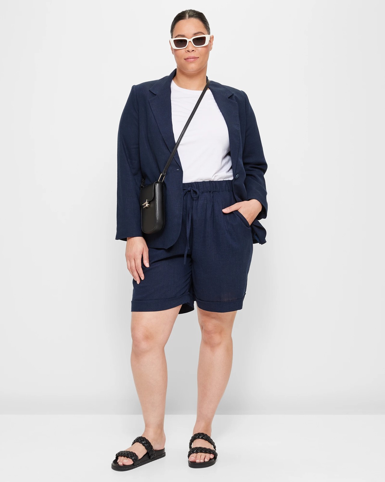Curve Linen Blend Shorts Navy Blue Target Australia