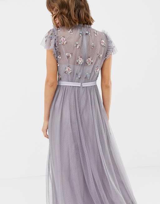 Needle Thread embellished bodice tulle maxi gown in lavender ASOS