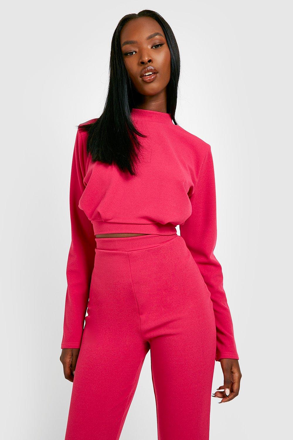 Neon Pink Rib High Neck Long Sleeve Top PrettyLittleThing CA