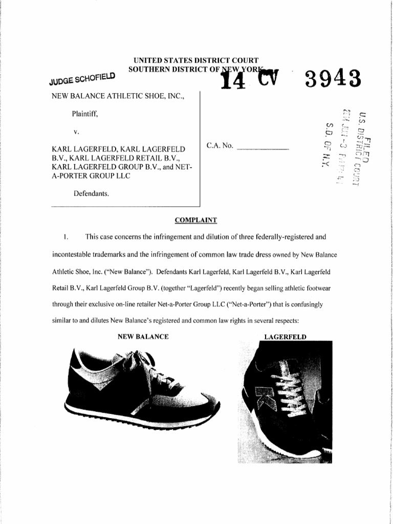 New Balance v. Lagerfeld Complaint PDF Trade Dress Trademark