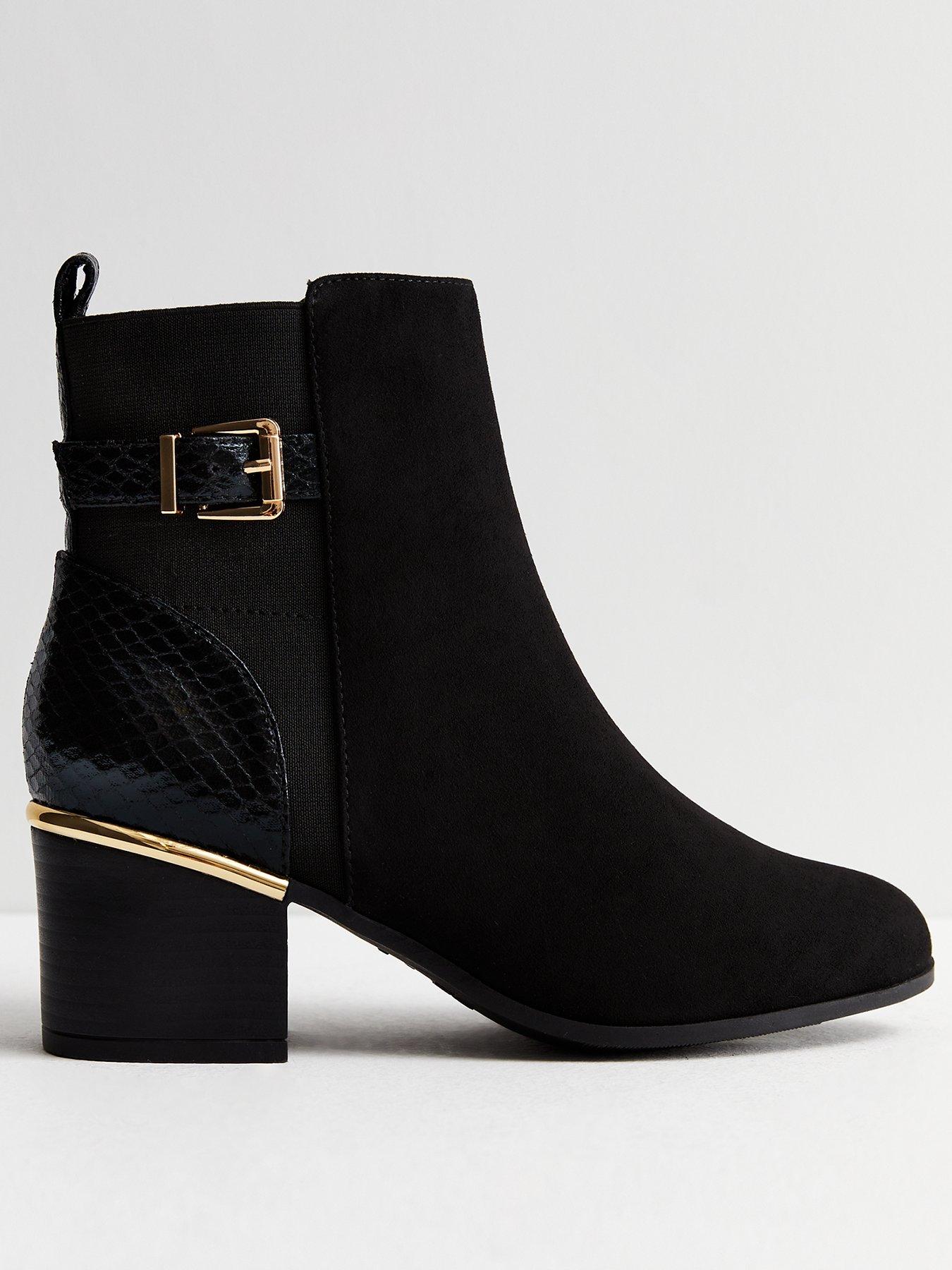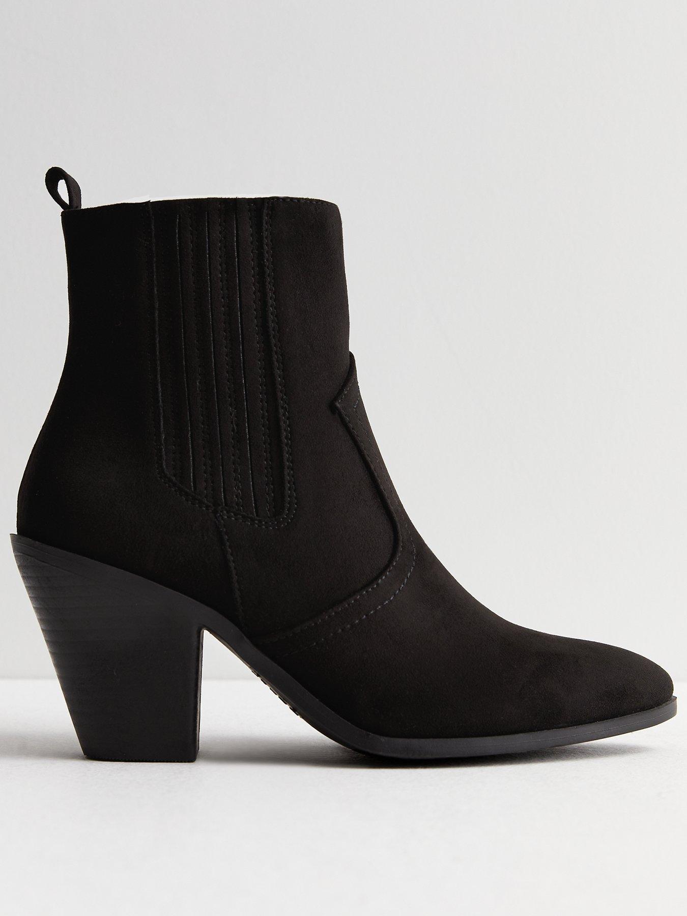 New Look Black Suedette Cowboy Block Heel Ankle Boots Very Ireland
