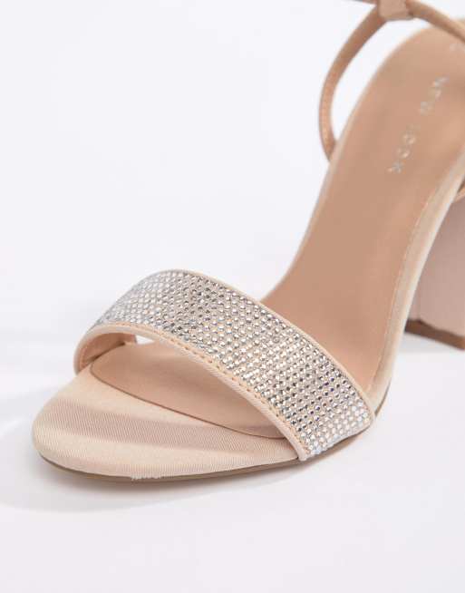 Silver Diamant Embellished Mid Block Heel Sandals New Look