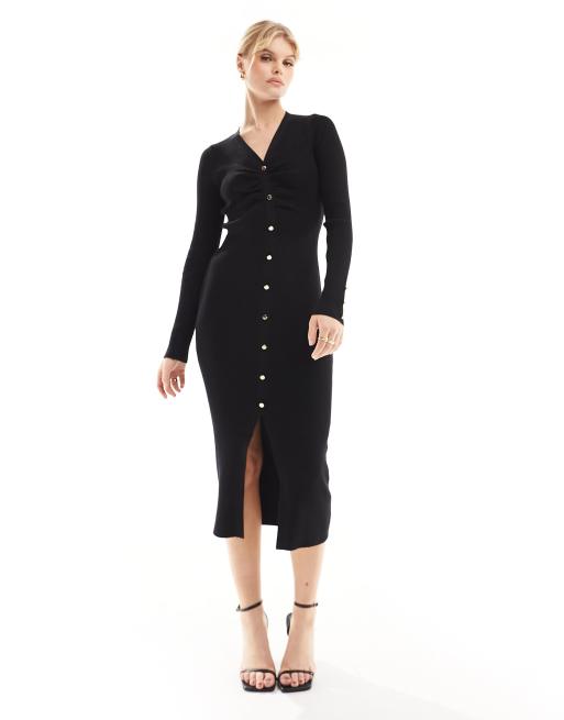 New look formal dress clearance, New Look knit ruched button up midi dress in black clearance