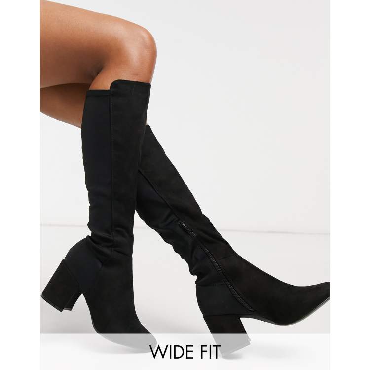 New Look Wide Fit heeled knee high chunky chelsea boot in black ASOS