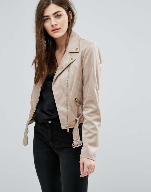 New Look suedette biker jacket in pink Leather jacket Stylish
