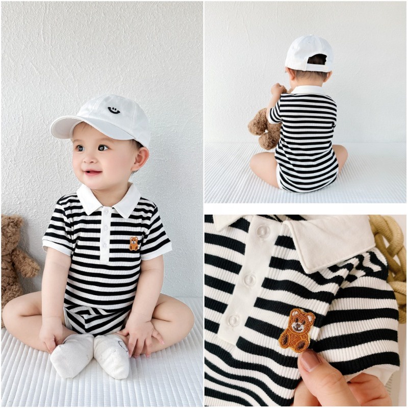 Newborn Infant Romper Clothes Ins Striped Polo Cotton Short