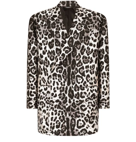 Men s Oversize double breasted jacket with leopard print DOLCE