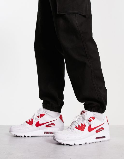 Nike Air Max 90 trainers in white and red