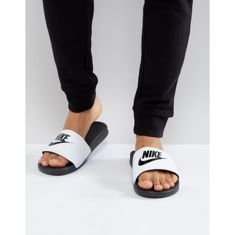 Nike benassi white clearance, Nike Benassi JDI sliders in white black ASOS clearance