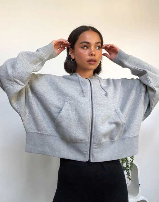 Nike mini swoosh oversized cropped zip through hoodie in grey