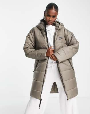 Nike classic longline padded jacket with hood in olive grey ASOS