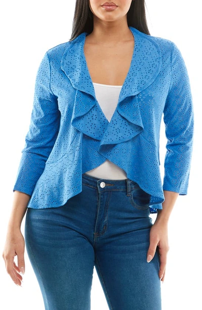 Nina Leonard Eyelet Ruffle Cardigan In Waterfall ModeSens