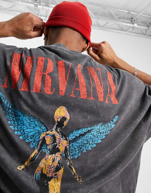 ASOS DESIGN oversized t shirt with Nirvana angel back print in