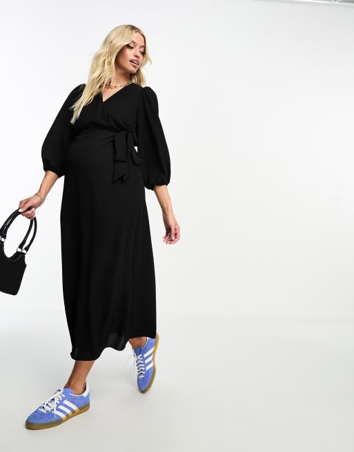 ASOS DESIGN Maternity nursing wrap midi dress in black