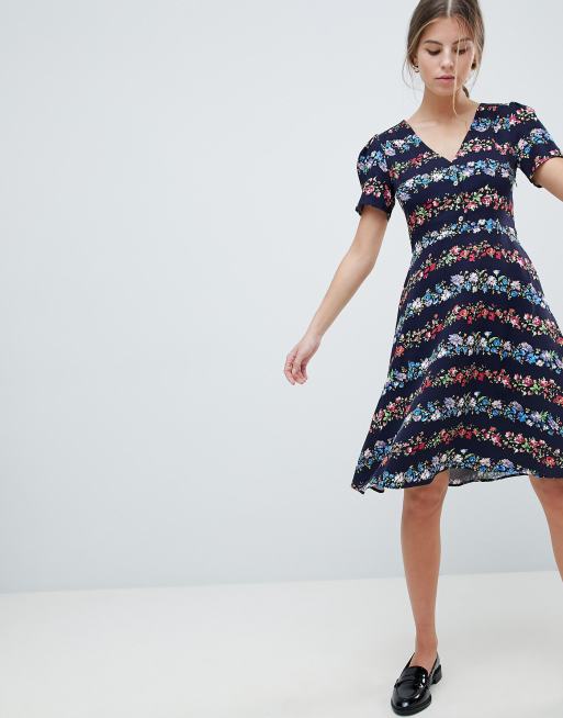 Oasis Ditsy Stripe Longer Length Skater Dress ASOS
