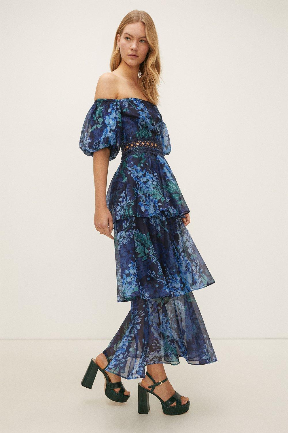 Dresses Lyanna Floral Tiered Organza Bardot Midi Dress Oasis