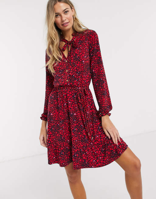 Oasis button through dress with heart button detail in red print