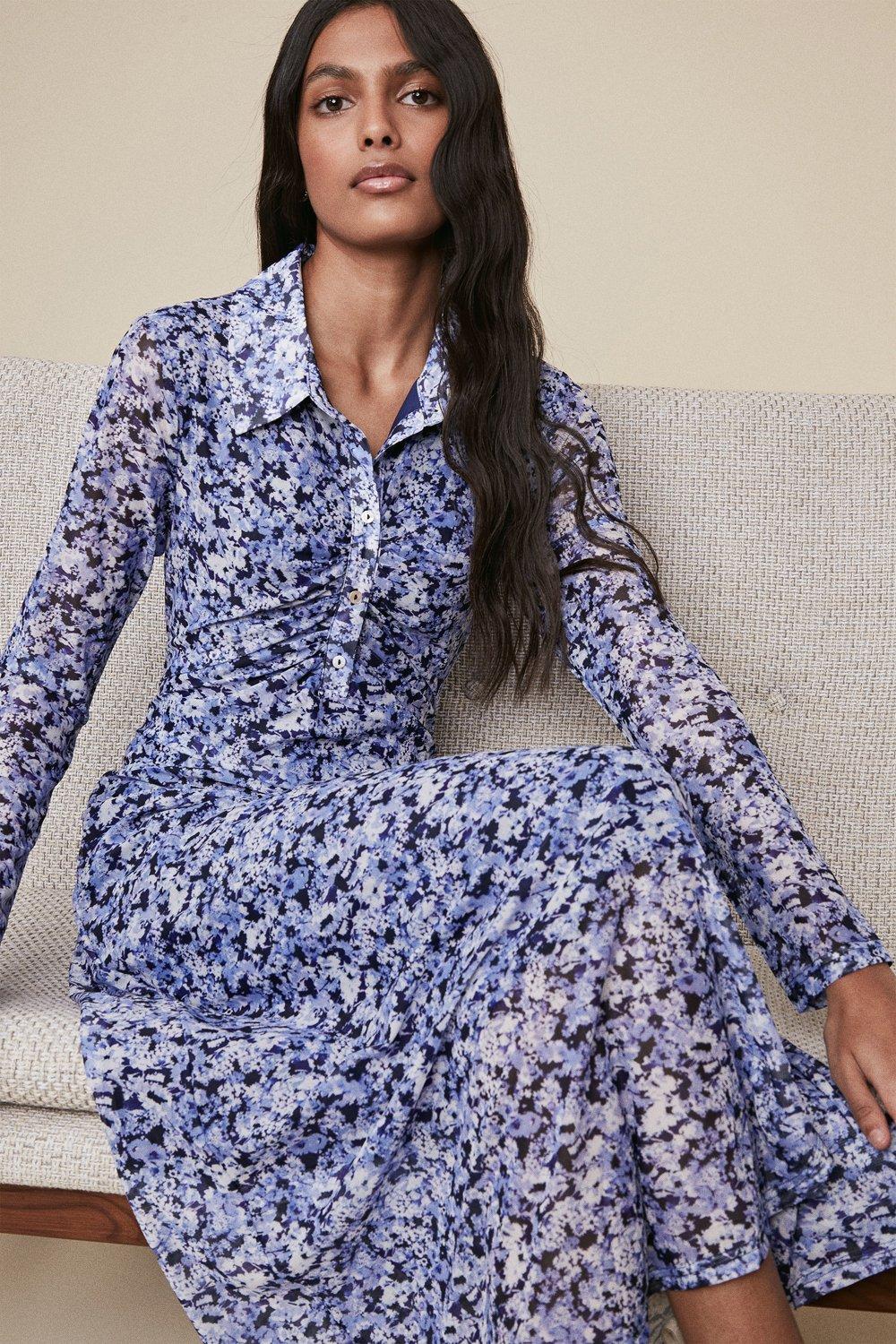 Dresses Ditsy Mesh Ruched Shirt Dress Oasis