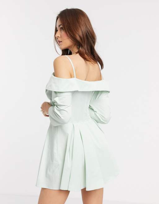 ASOS DESIGN off shoulder corset detail mini shirt dress with