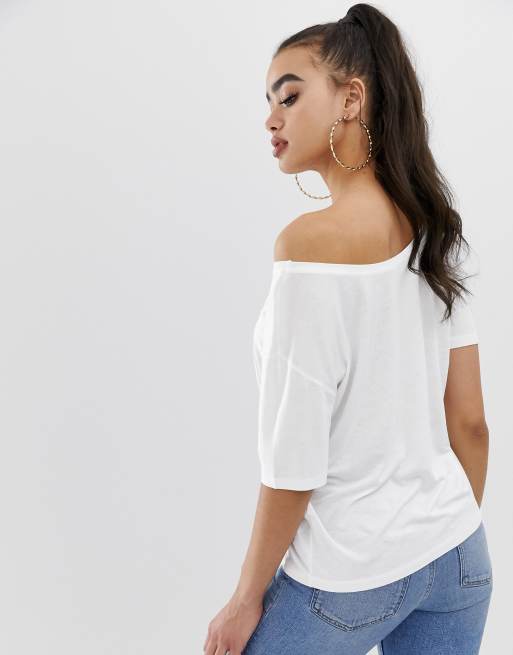 ASOS DESIGN off shoulder t shirt in white ASOS