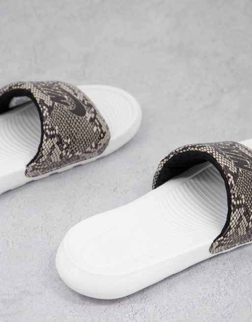 Nike Victori sliders in off white and snake print ASOS
