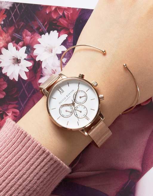 Olivia Burton Rose Gold Chrono Detail Mesh Watch ASOS