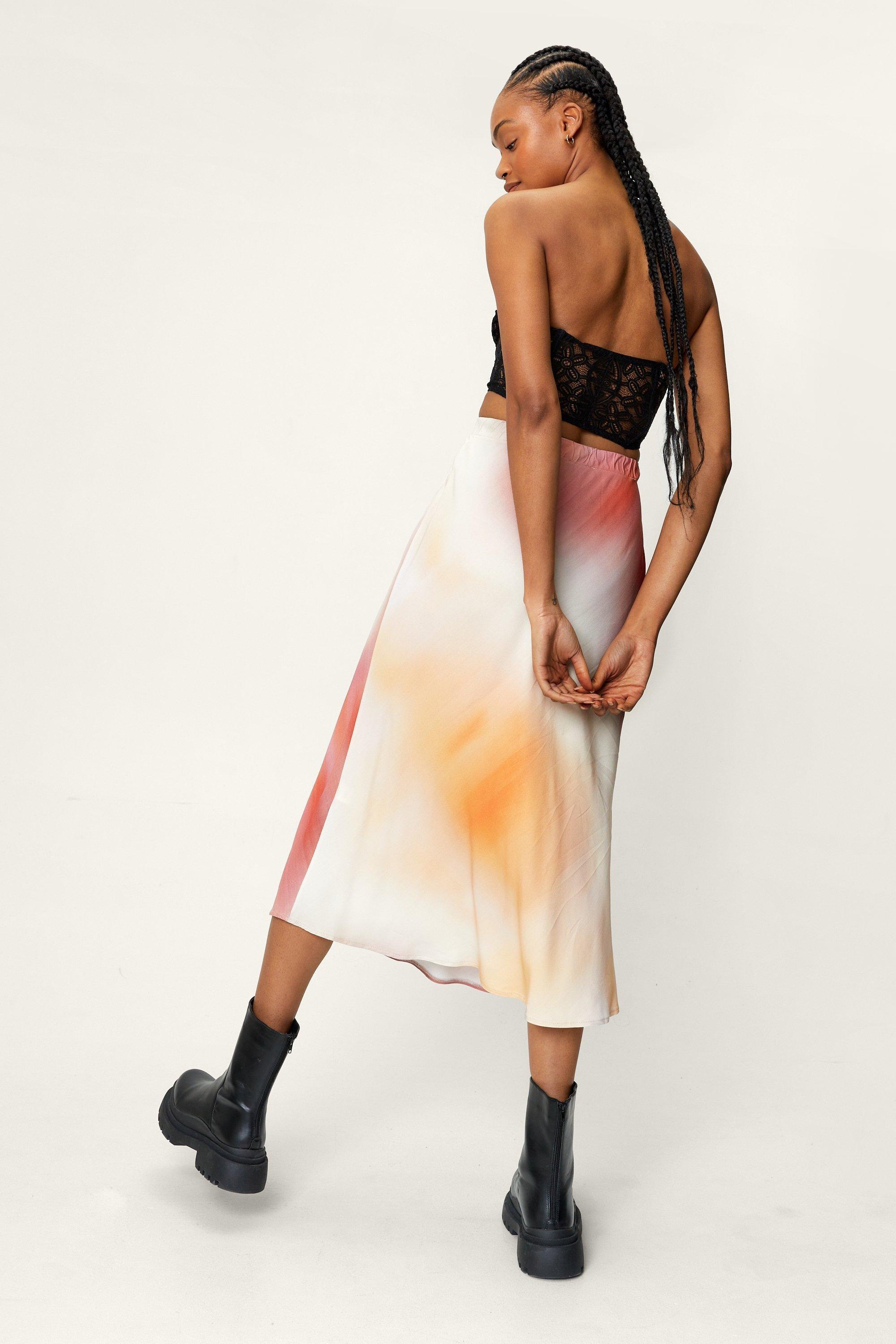 Ombre Tie Dye Printed Bias Cut Midi Skirt boohoo