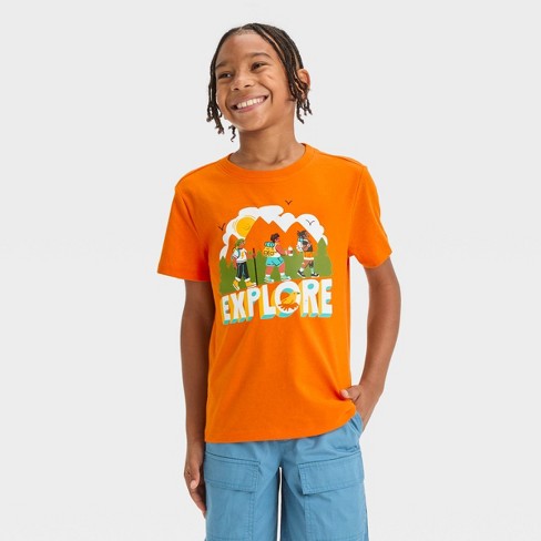 Boys Short Sleeve explore Graphic T shirt Cat Jack Orange