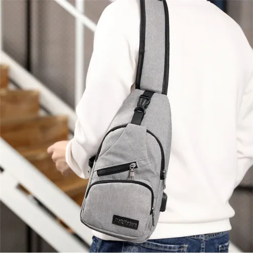 Men s chest bag casual outdoor travel messenger bag with USB port