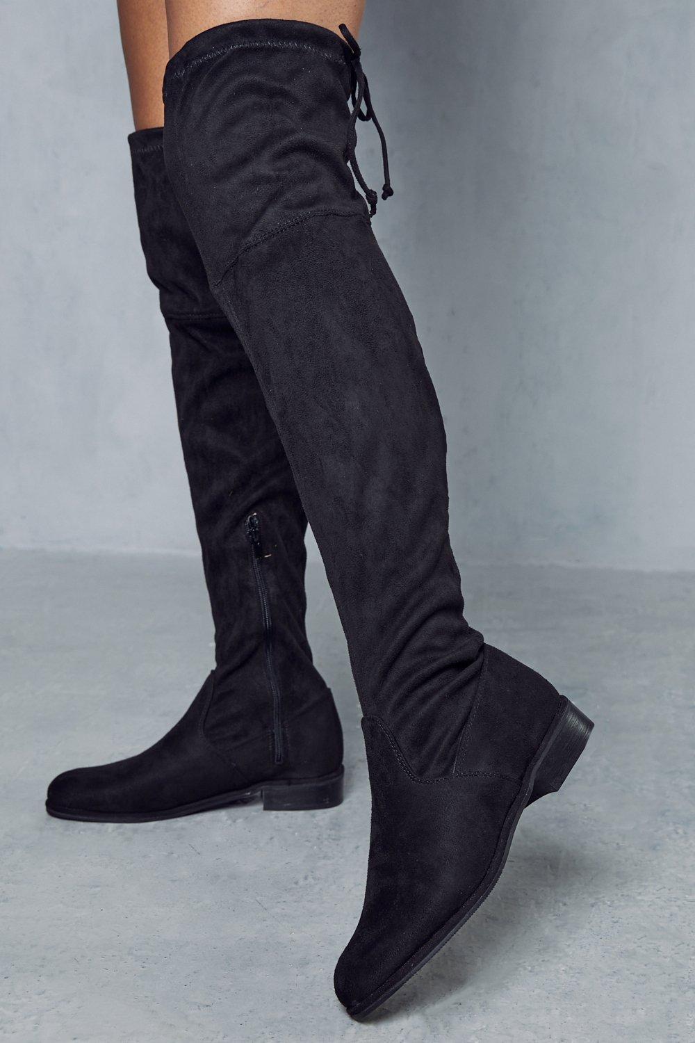 Boots Tie Back Flat Over The Knee Boots MissPap