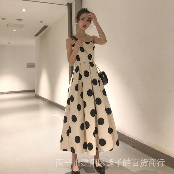 Polka dot dress French popular skirt One shoulder big polka dot
