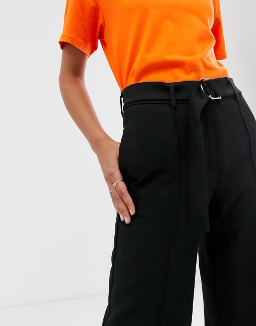 Pantalon noir avec ceinture clearance, Pantalon coupe droite noir femme avec ceinture Lo cia clearance