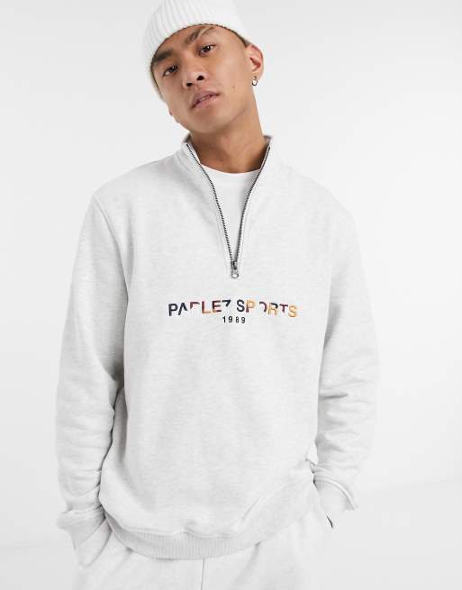 Parlez Nelson half zip embroidered sweatshirt in gray ASOS