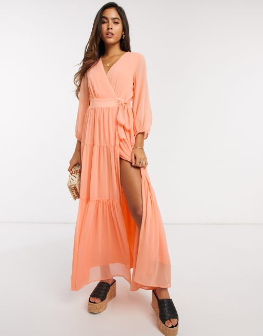 Peach flowy dress clearance, Adalene Peach V Plunge Maxi Dress Miss G Couture clearance