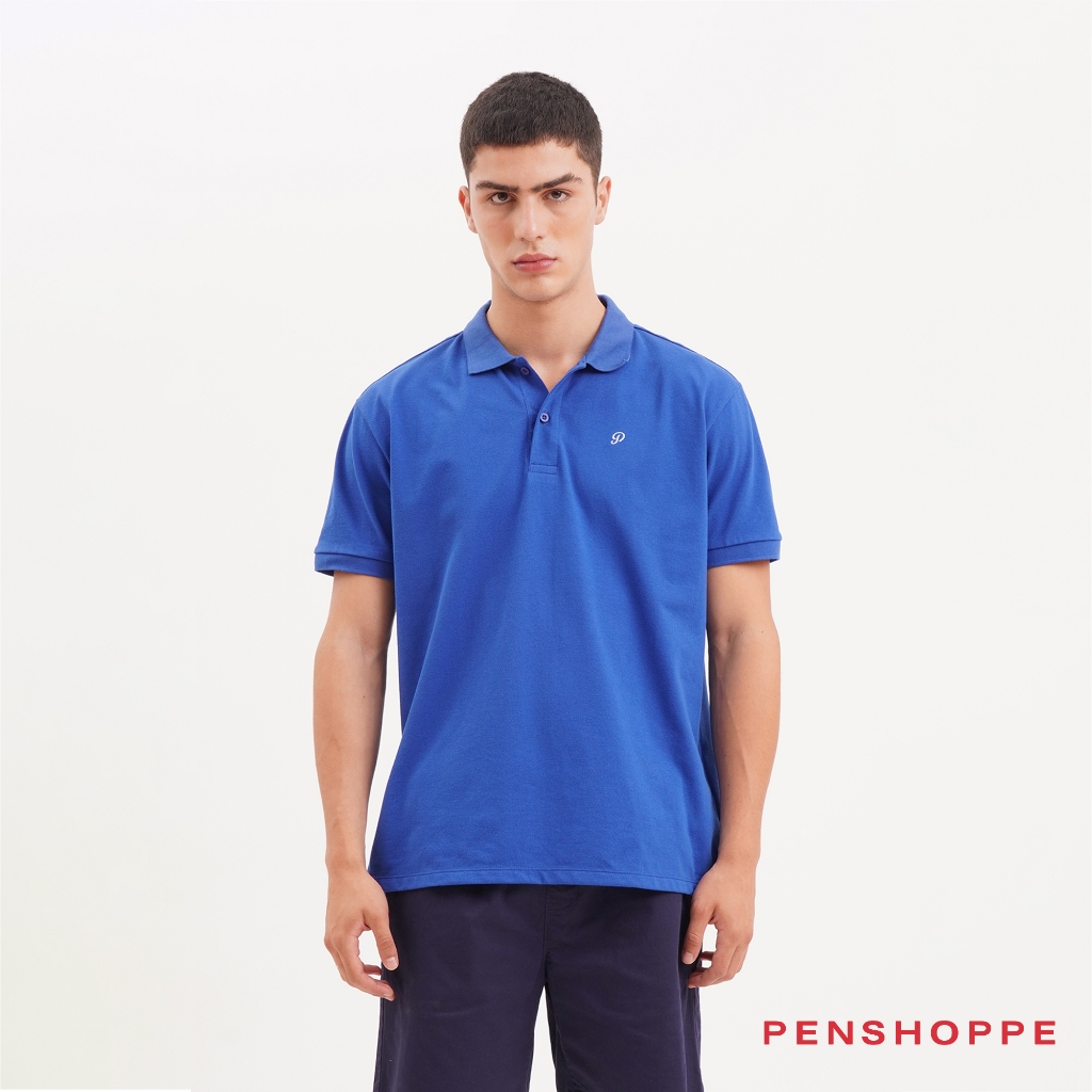 Penshoppe polo short sleeves clearance, Penshoppe Relaxed Fit Polo With Embroidery For Men Blue Gray Midnight Navy clearance
