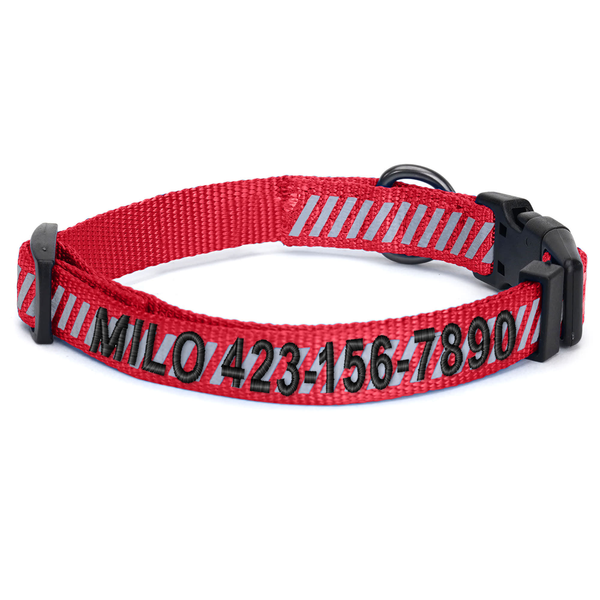 GoTags Personalized Red Dog Collar with Custom Embroidery X Small
