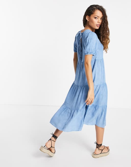 Influence Petite tiered midi dress in chambray