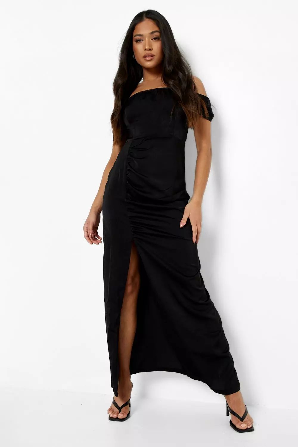 Petite Satin Cold Shoulder Maxi Dress boohoo