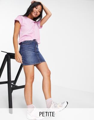 DTT Petite Gabby high waisted denim skirt in mid blue ASOS