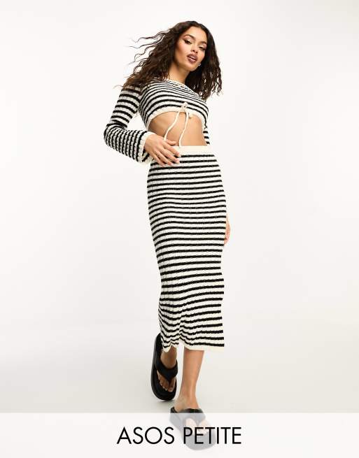 ASOS DESIGN Petite knit midi skirt in black and white stripe part of a set