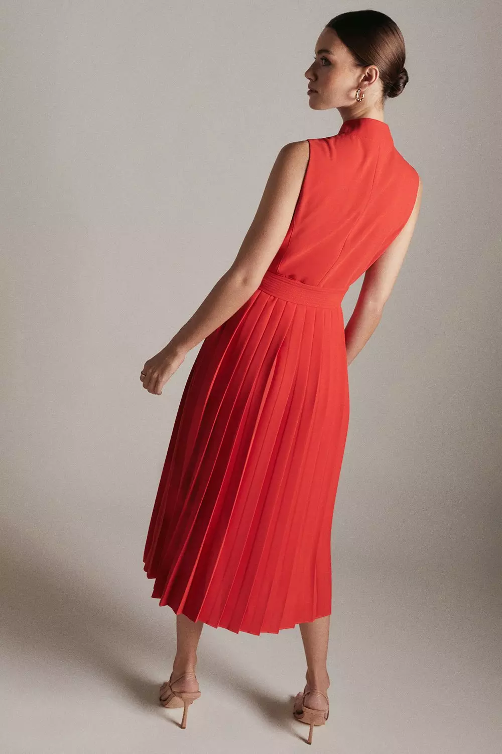 Petite Pleat Notch Neck Woven Midi Dress Karen Millen