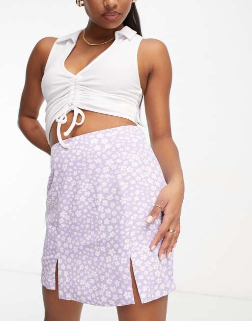 Glamorous Petite 90s mini shift skirt in lilac white floral
