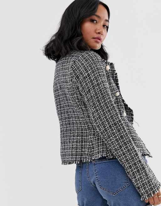 Parisian Petite crop tweed blazer with pearl effect buttons