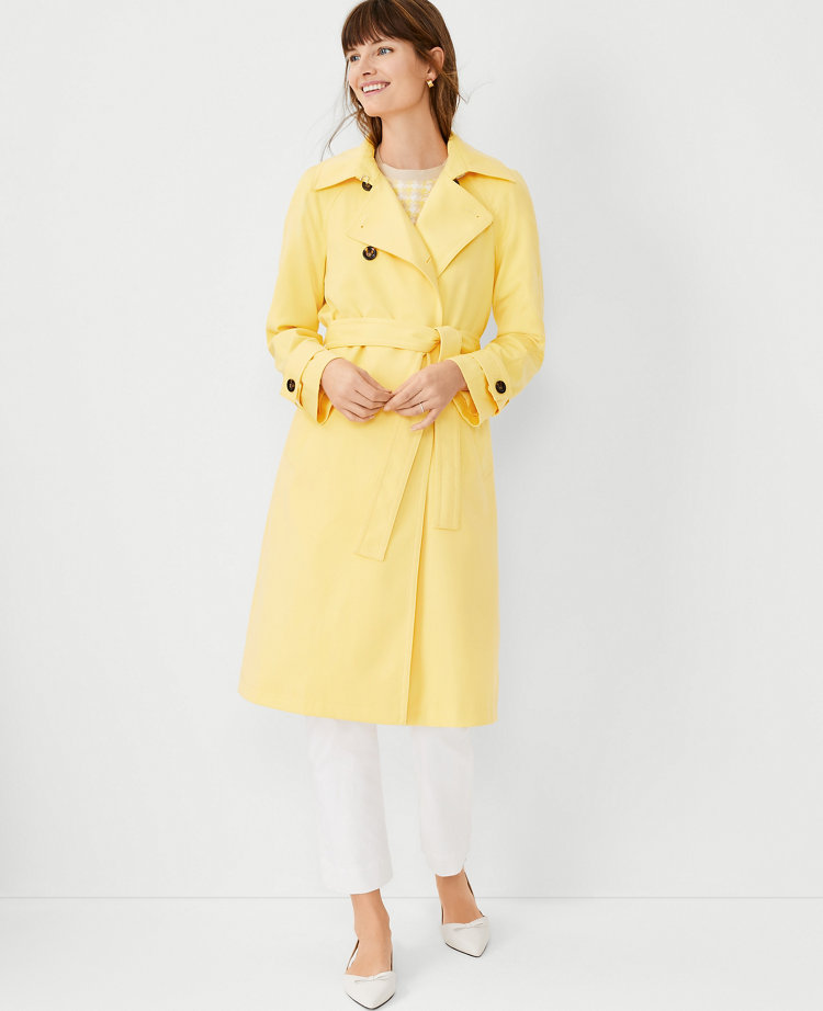 Petite yellow raincoat clearance, Petite Back Pleated Trench Coat clearance