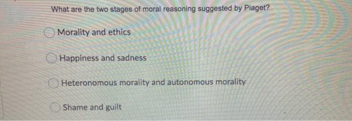 Piaget heteronomous morality clearance, Solved What are the two stages of moral reasoning suggested clearance