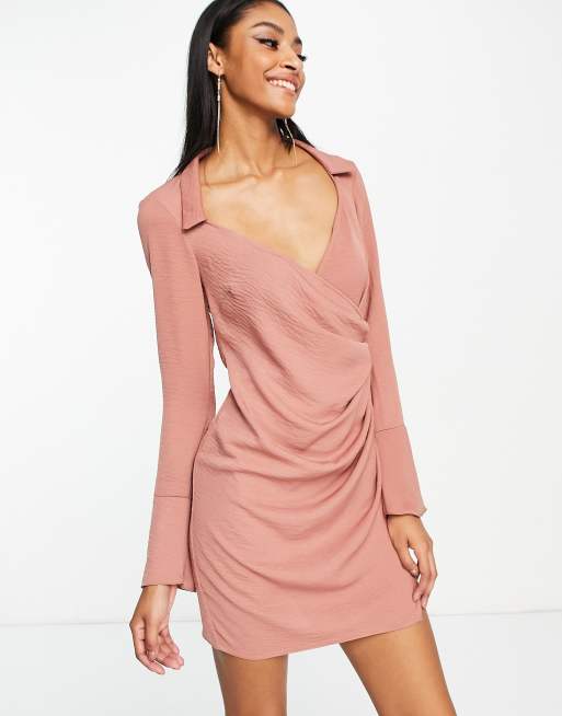 ASOS DESIGN 70s drape front wrap mini dress in pink ASOS