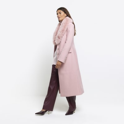 Pink Faux Fur Collar Longline Coat River Island